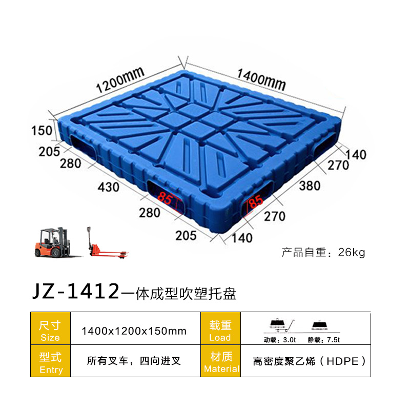 雙面吹塑托盤采用吹塑成型工藝,通常需要使用大型的中空成型機(jī)進(jìn)行生產(chǎn)。這種托盤的設(shè)計允許其正反兩面均可使用,因此被稱為雙面塑料托盤。雙面吹塑塑料托盤的優(yōu)點包括承載能力強(qiáng)、使用壽命長,這得益于其內(nèi)部設(shè)計了X軸向緯筋、Y軸向縱筋、Z軸向豎筋,以及內(nèi)部至少包含兩個支撐架,面板的兩頭向內(nèi)折回,從而增強(qiáng)了其承載強(qiáng)度。此外,雙面吹塑塑料托盤可以四面進(jìn)叉,每個側(cè)面設(shè)計了兩個跑道型的通孔,使得塑料托盤上下面板結(jié)構(gòu)設(shè)計相同,結(jié)合在一起完成了雙面的運用。這種托盤的支撐架橫截面設(shè)計為半框形,既在強(qiáng)度合理的前提下減少了自身的重量,又在使用時沒有局限性,實現(xiàn)了高效率的自動化生產(chǎn),且成本較低。雙面吹塑塑料托盤完全不添加金屬材質(zhì),塑料托盤廠家可以回收再利用,符合環(huán)保要求?